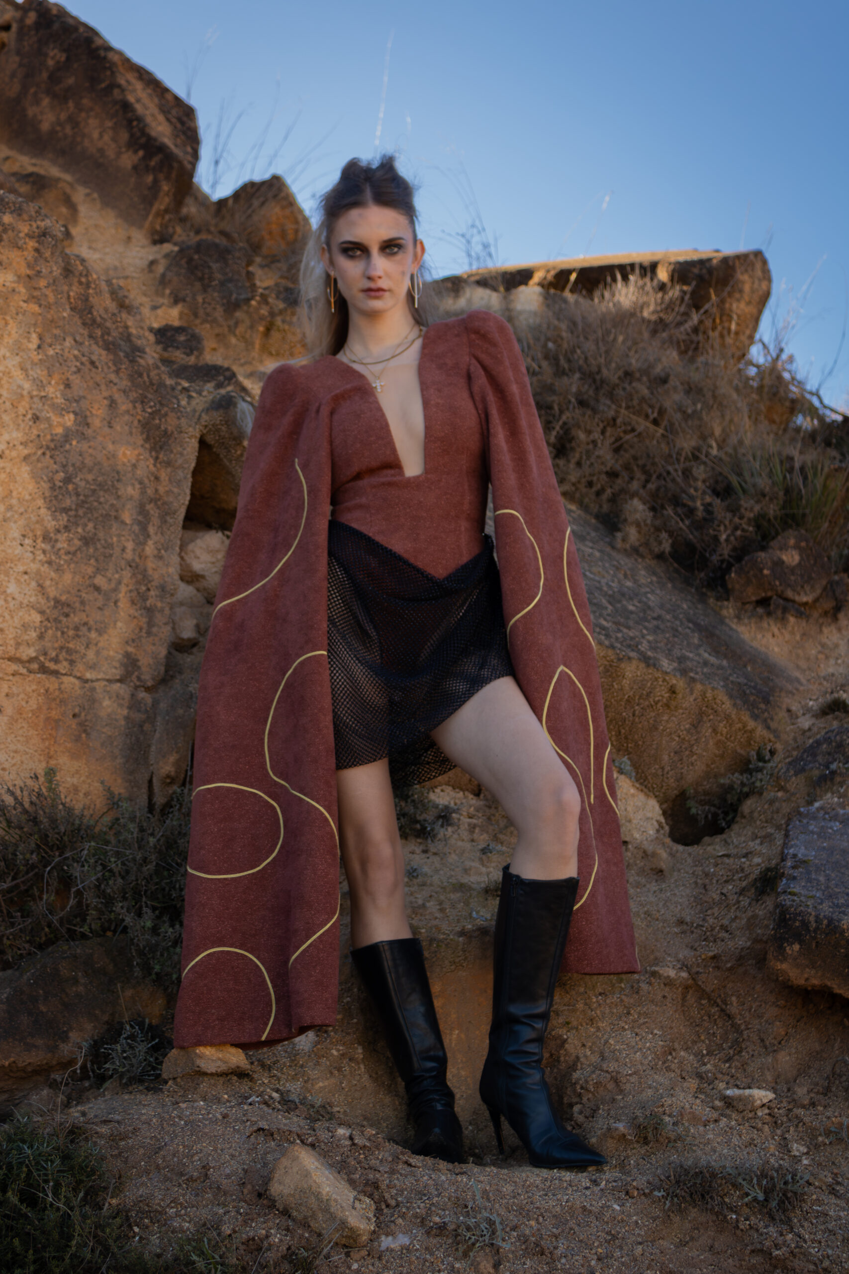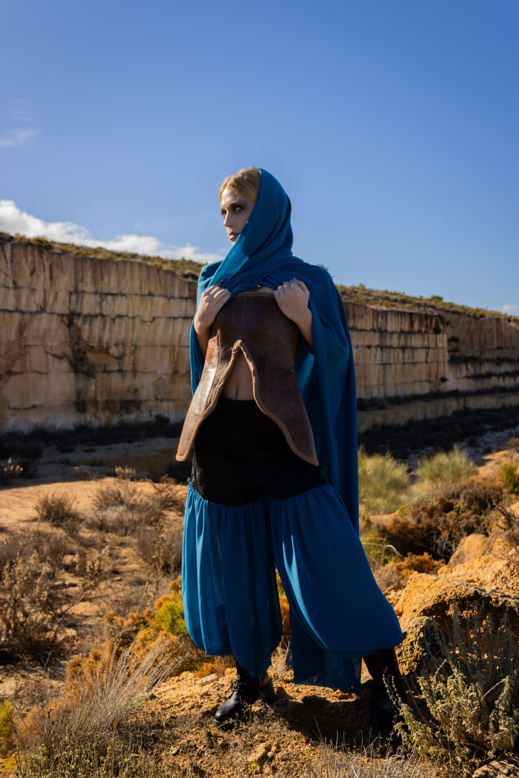 La inspiración de este fashion film parte directamente de la estética de las películas Mad Max. Este universo cinematográfico plantea un futuro hostil, marcado por la escasez de recursos y la supervivencia. A partir de esa referencia, surge la idea de crear una narrativa visual situada en un mundo apocalíptico. Un mundo donde el entorno condiciona tanto la forma de vivir como la manera de vestir.