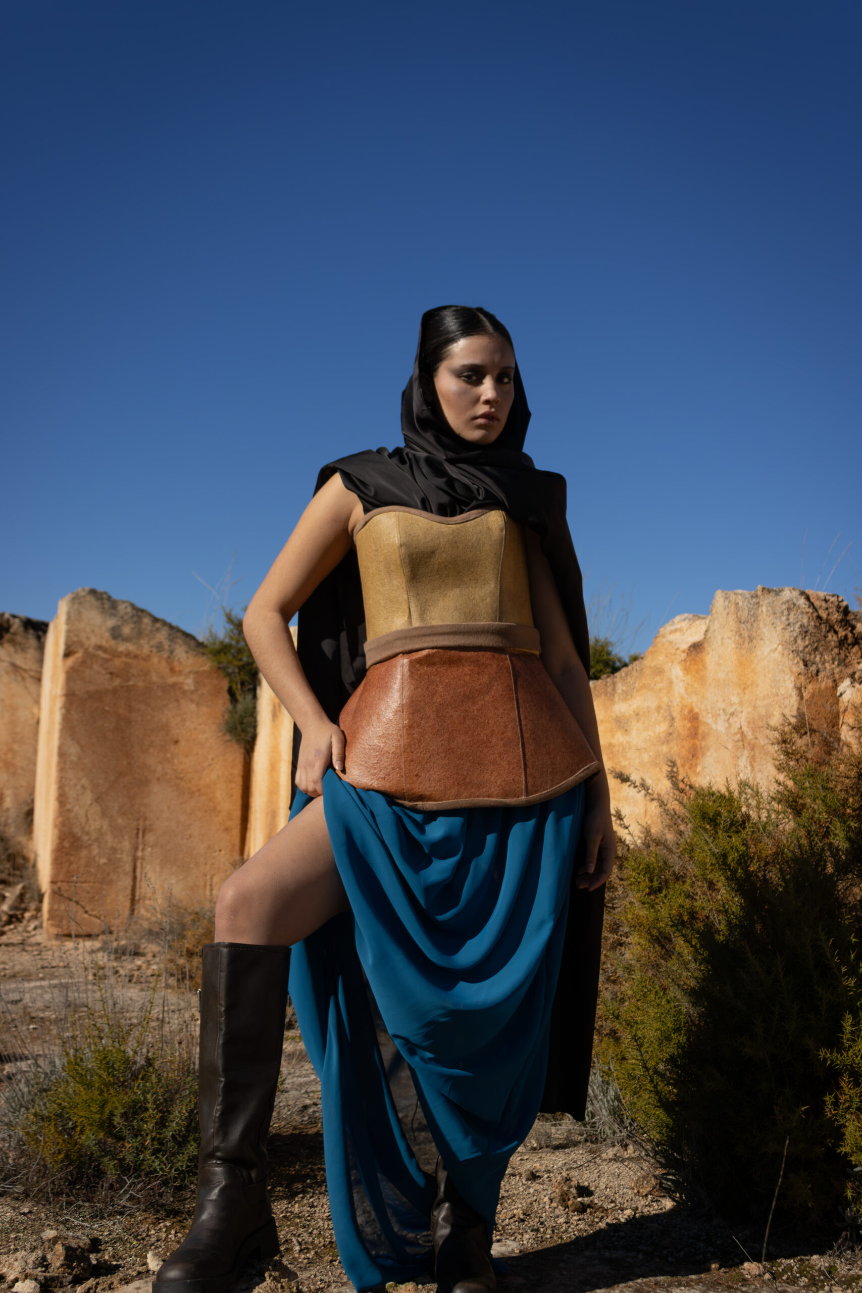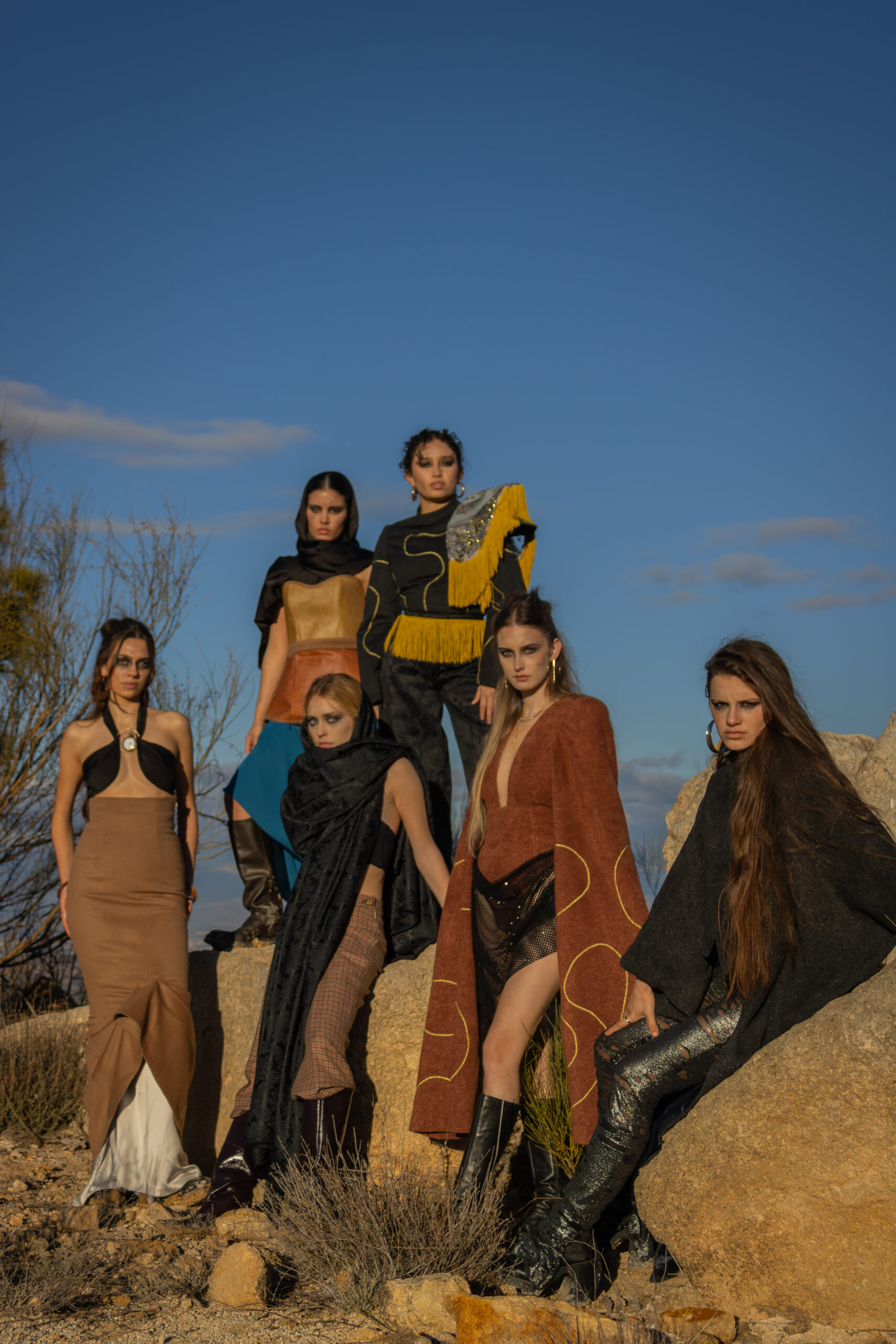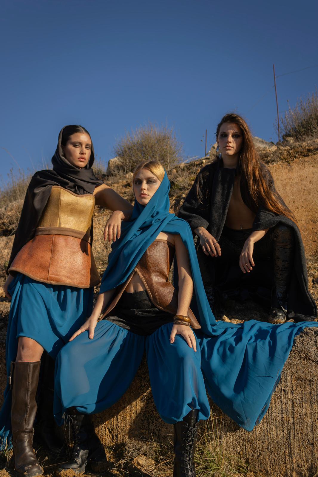 Ambas conviven en un entorno desértico donde surgen tensiones y enfrentamientos. El agua y la tierra se representan mediante tejidos, volúmenes y estructuras opuestas. Lo rígido y lo fluido funcionan como conceptos visuales. Los estilismos refuerzan la narrativa del conflicto y la supervivencia. El universo de Mad Max sirve como referencia para construir este mundo ficticio. El fashion film utiliza la moda como herramienta para contar una historia apocalíptica.De