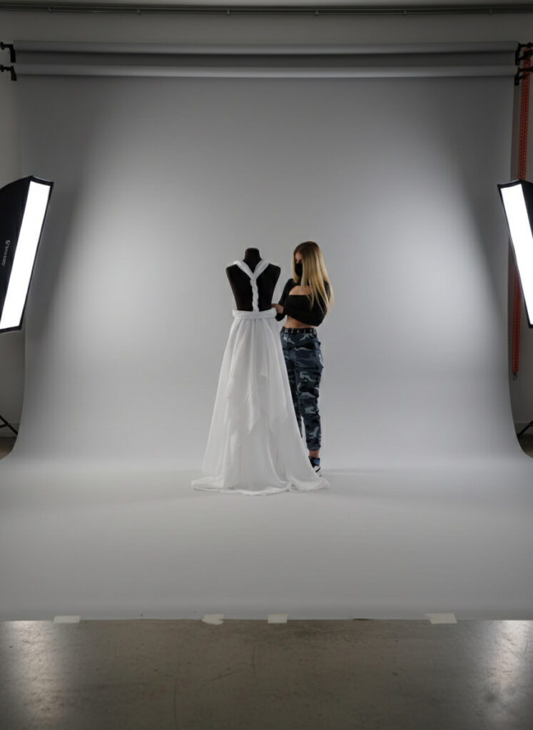 En mis proyectos actuales realizo todas las fases: diseño, patronaje, confección, fichas técnicas e incluso la fotografía y edición de las sesiones.